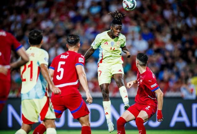 逼平了欧洲冠军却高兴不起来。夏天后首个国际比赛周,塞尔维亚在欧国联主场迎来新科欧洲杯冠军西班牙,双方酣战整场互交白卷。西班牙毫无疑问地全场占优却把握不到机会,不过塞尔维亚也没什么好庆幸,因为全场最离谱的浪射是本方大将贡献的。